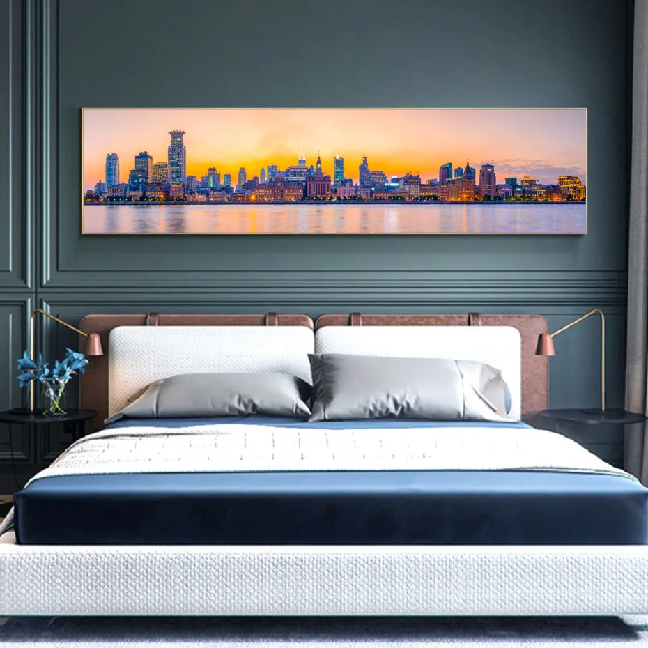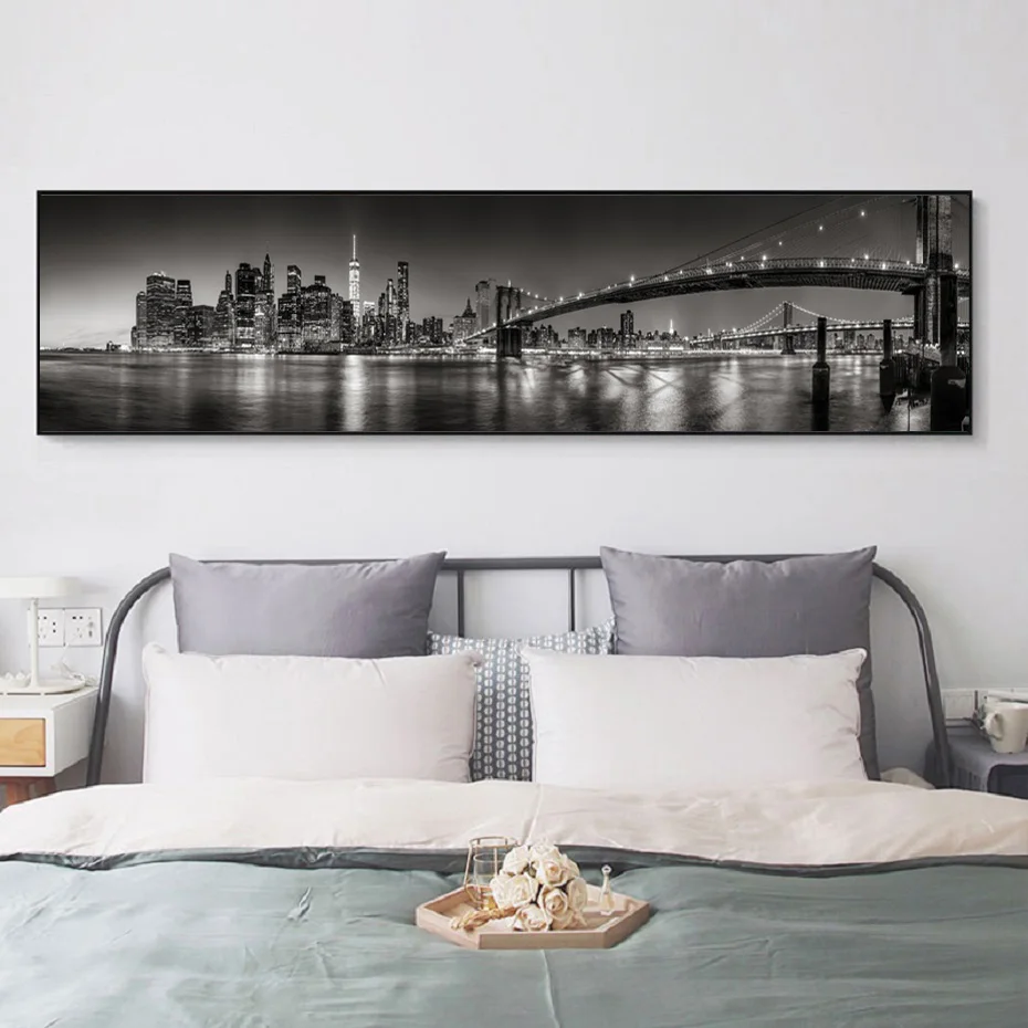 Картина на холсте с изображением длинного ночного города в скандинавском стиле, черно-белая пейзажная картина для гостиной, Декор для дома