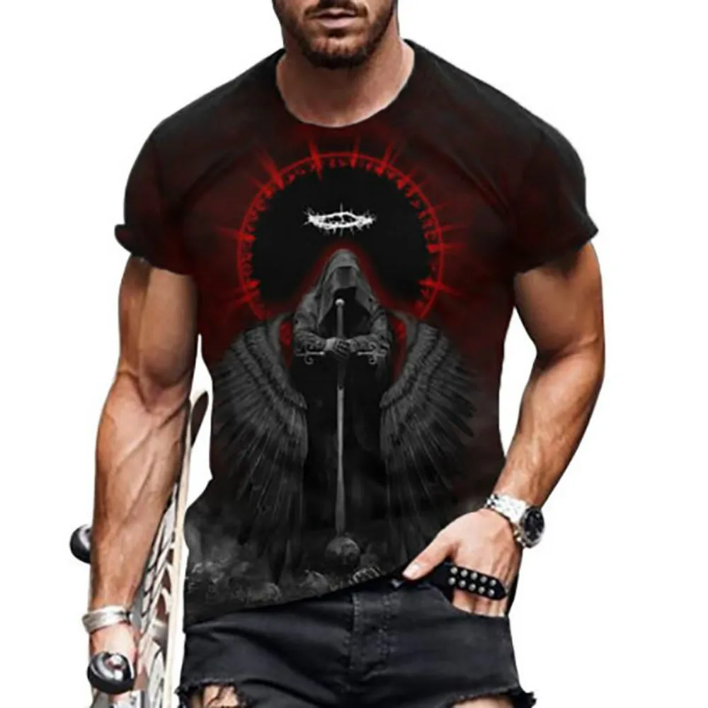 Мужская футболка с 3D-принтом черепа, черная футболка с круглым вырезом в стиле ретро, лето 2021