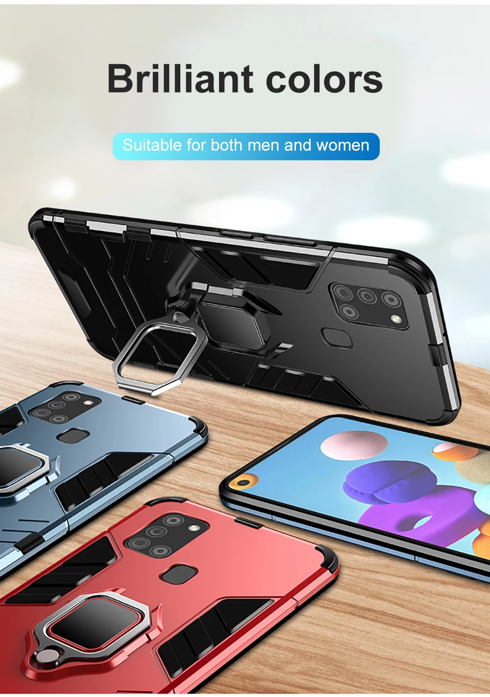 Противоударный армированный чехол для Samsung Galaxy A21S, кольцевая подставка, задняя крышка телефона для Galaxy M31, M21, M11, M12, M30S, M01, M31S, M51