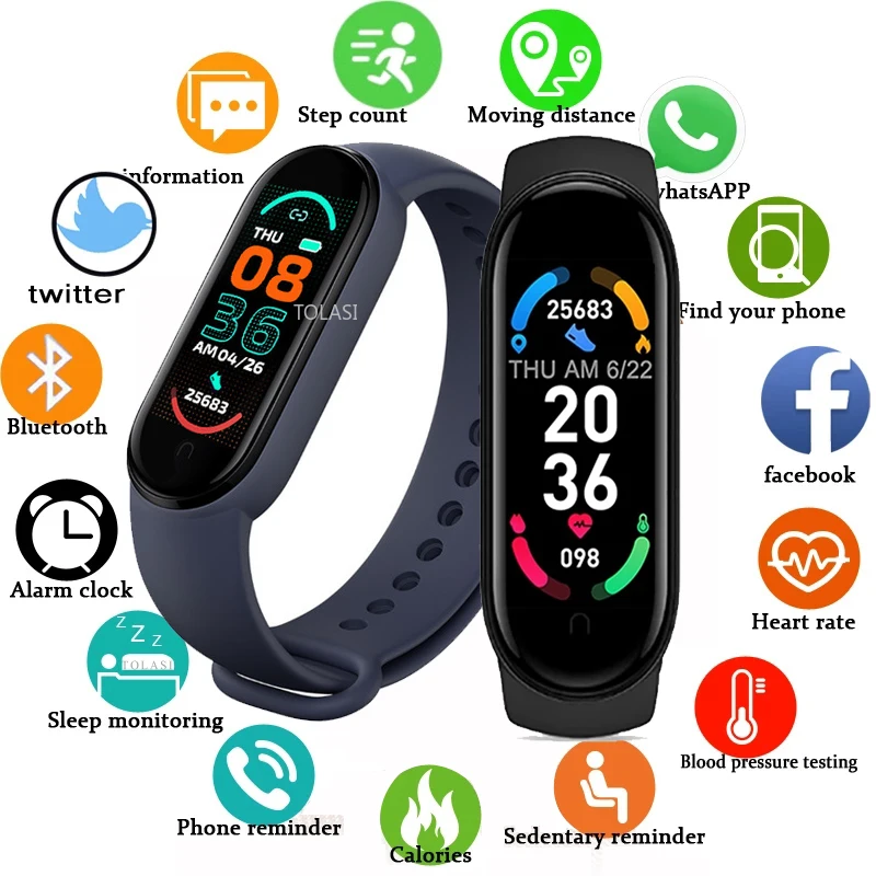 2021 Смарт-часы M6 монитор сердечного ритма кровяного давления фитн...