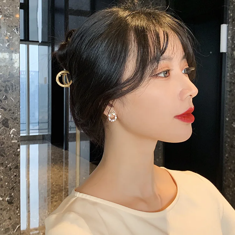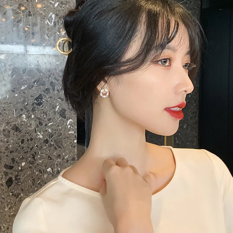 Милые модные серьги с маленьким бантом, новинка 2021, серьги с имитацией жемчуга из сетчатого красного цвета, оптовая продажа, украшения из нержавеющей стали для женщин