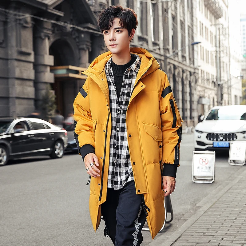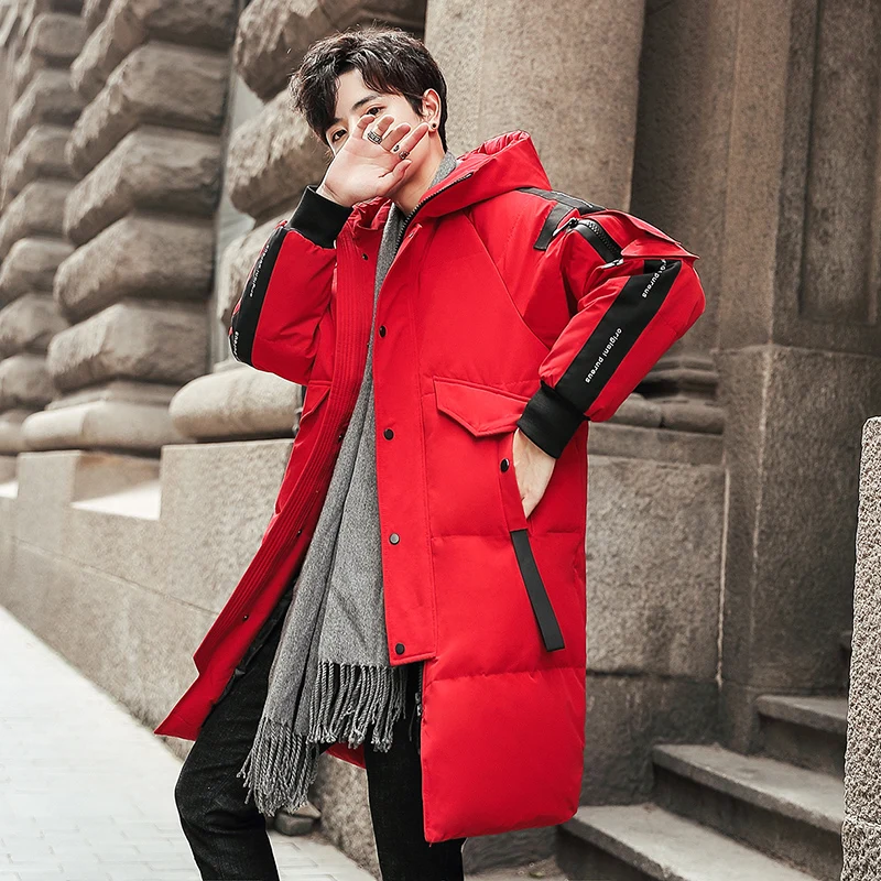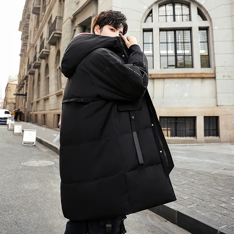 Мужской пуховик средней длины, толстая мужская куртка на утином пух...