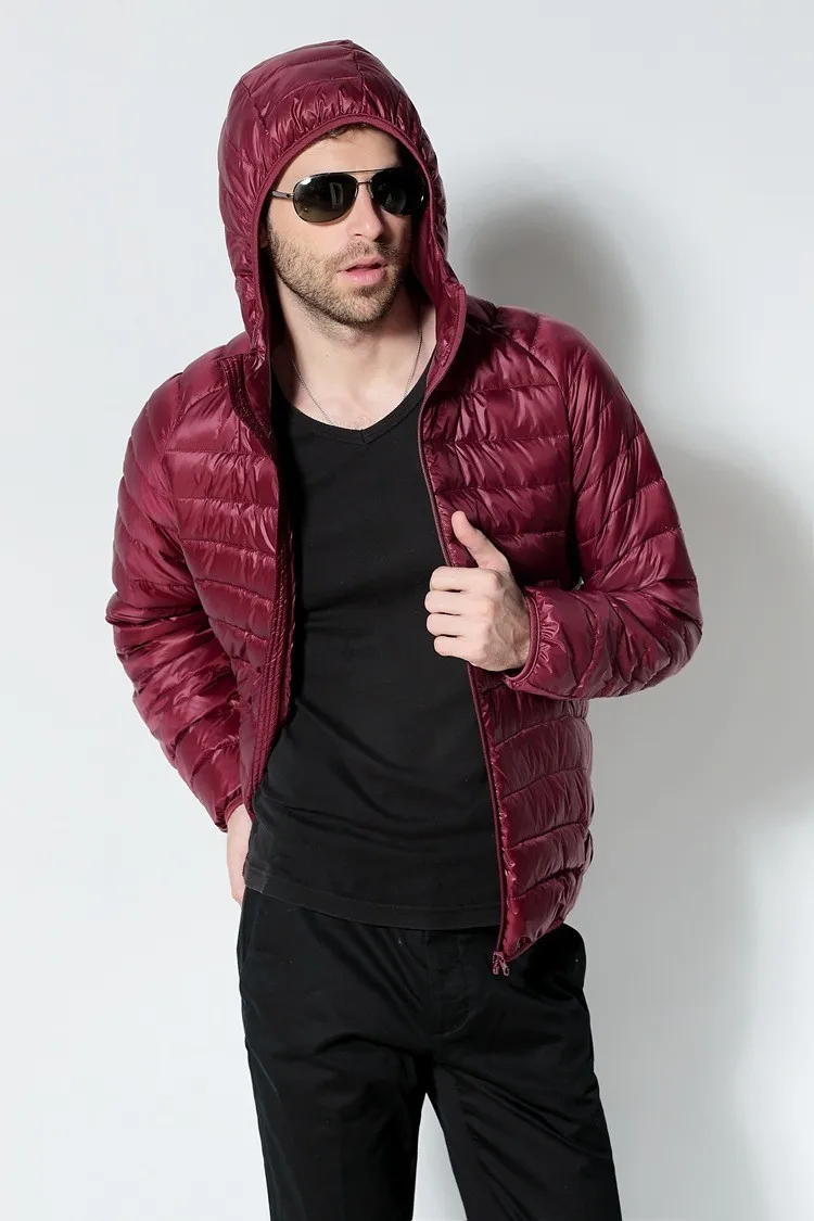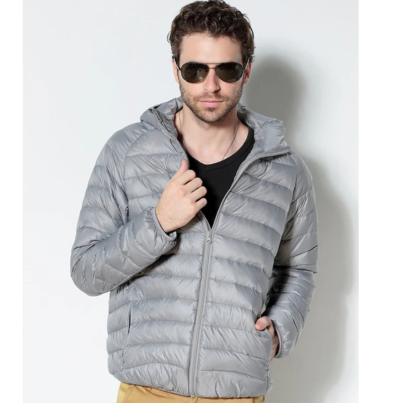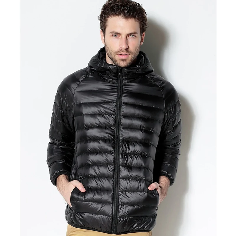 Мужская куртка на белом утином пуху, 2021 Новый портативный пуховик с капюшоном, сверхлегкое зимнее пальто, теплые парки на пуху