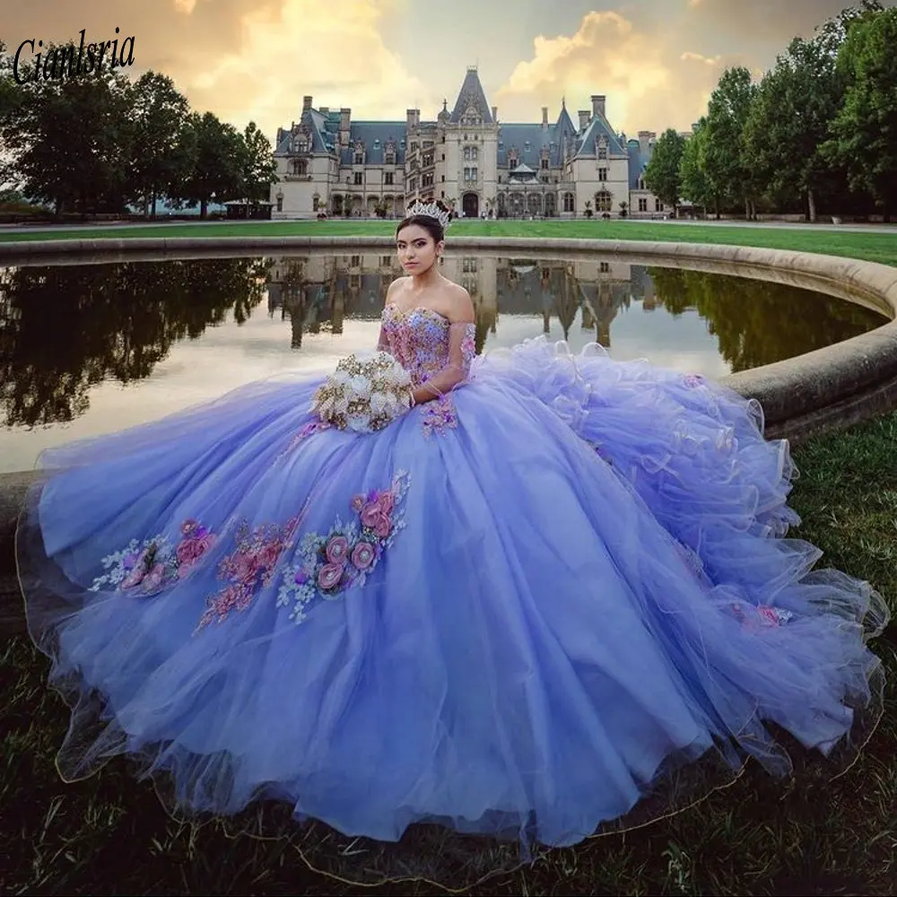 Небесно-голубое платье Vestidos de 15 anos с кружевной аппликацией,...