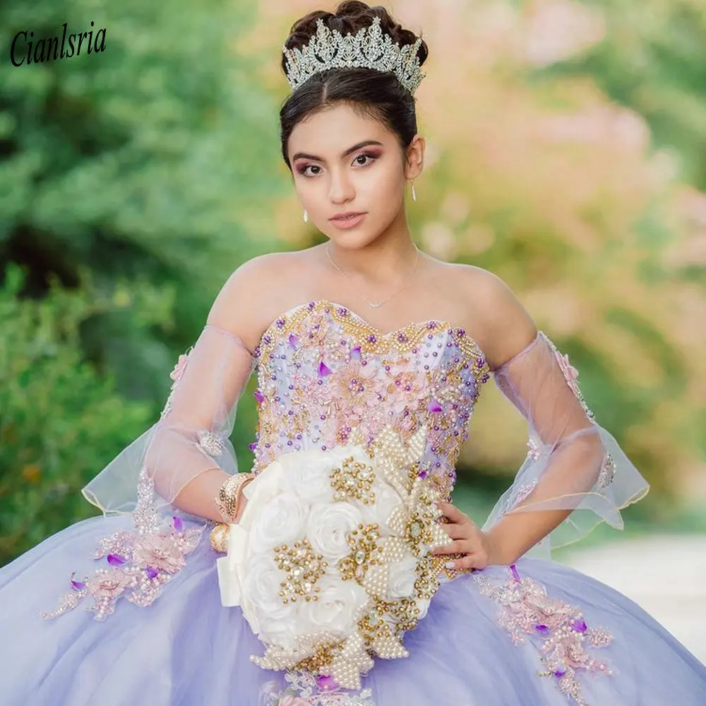 Популярные платья лавандового цвета с длинными рукавами, бальные пл...