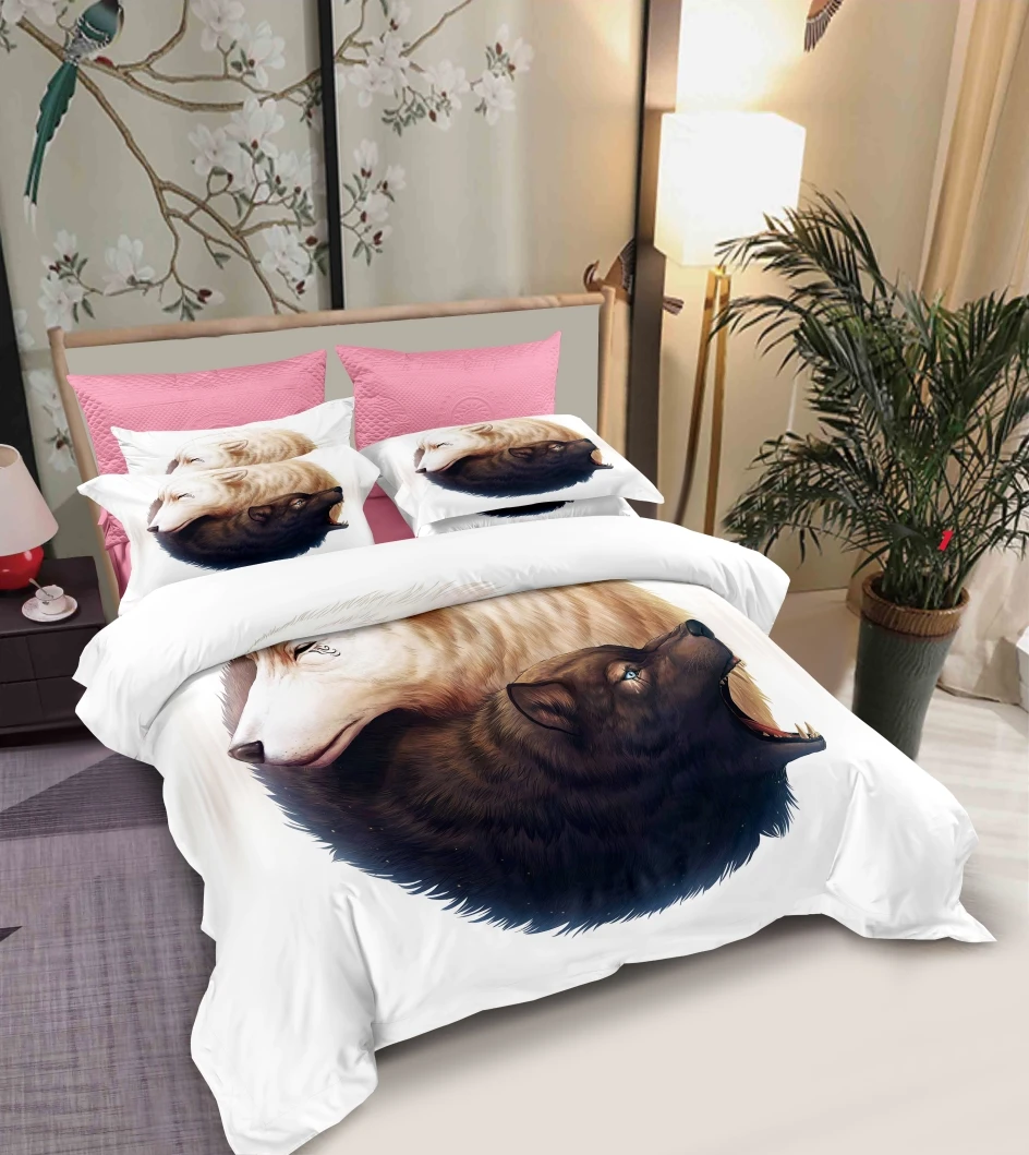 Комплект постельного белья с принтом волк, односпальный Комплект по...