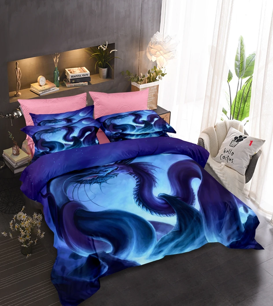 Комплект постельного белья с изображением дракона, одинарный, двойн...