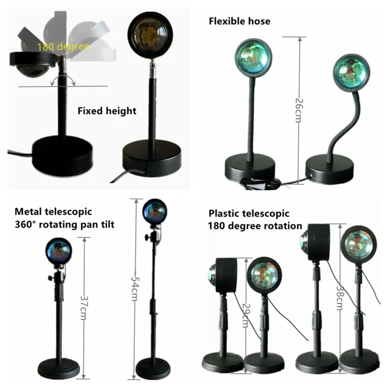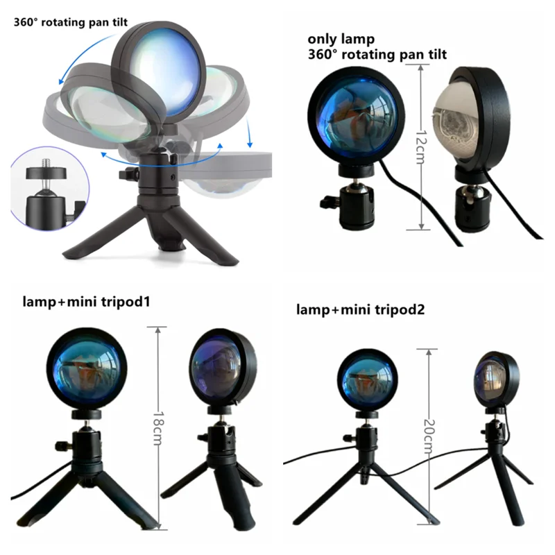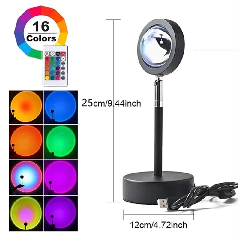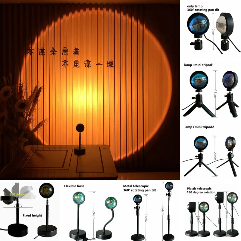 Блок питания Sunset светильник 5V USB, кабель с кнопкой включения. Универсальный шарнирный Вал из алюминиевого сплава, регулируемый на 180 или 360 градусов, угол наклона можно свободно регулировать. Краска не падает, красивее, чтобы удовлетворить ваши различные потребности, она может излучать разсветильник с разных ракурсов, чтобы привнести различные эффекты в вашу комнату светильник отливает удивительным цветным кругосветильник Том. Чем больше расстояние, тем больше проекция, которую может бросить закат на стену или потолок.