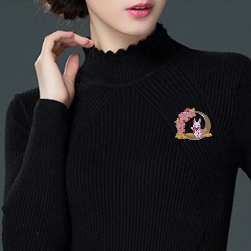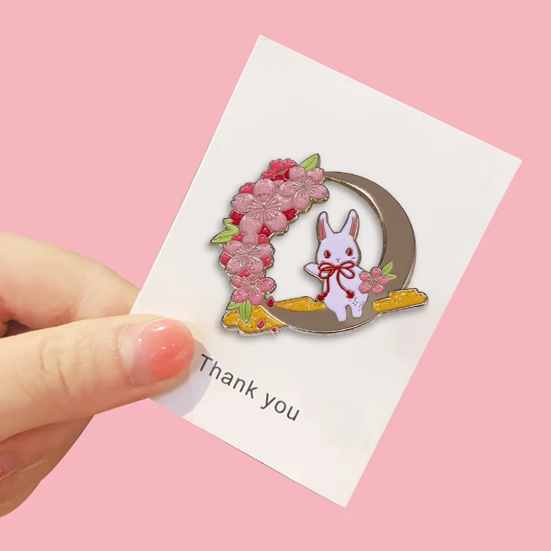 Эмалированная брошь в виде цветка, кролика, мочи, сакуры, Луны