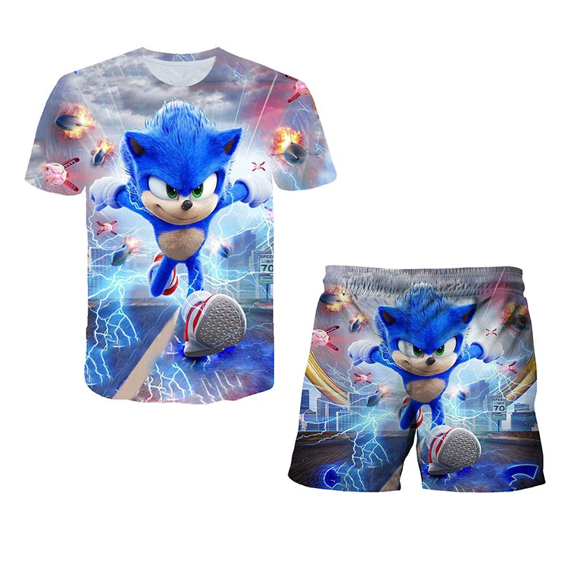 Детская одежда костюм топ + шорты звуковые шорты для мальчиков спортивный костюм анимационная Одежда для девочек костюм с шортами