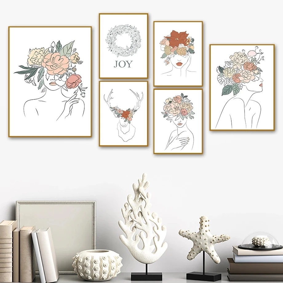 Скандинавские абстрактные женские телесные Цветочные линии художественные плакаты и принты Современная Настенная живопись холст картина для декора гостиной