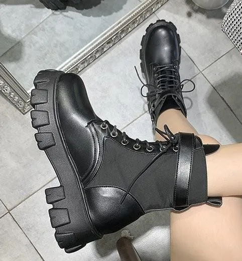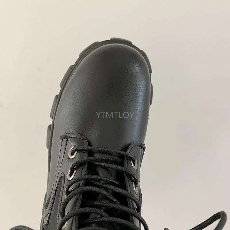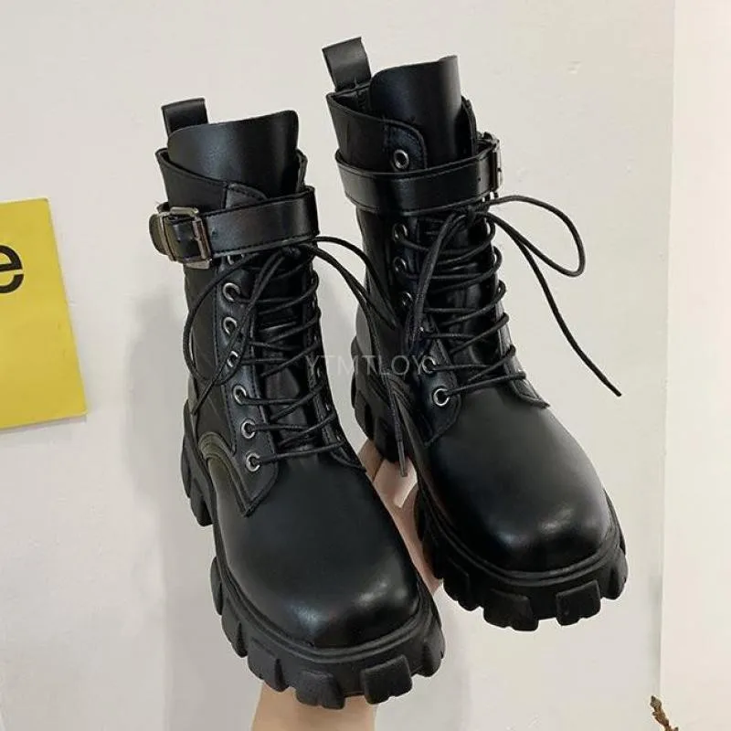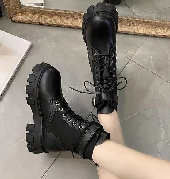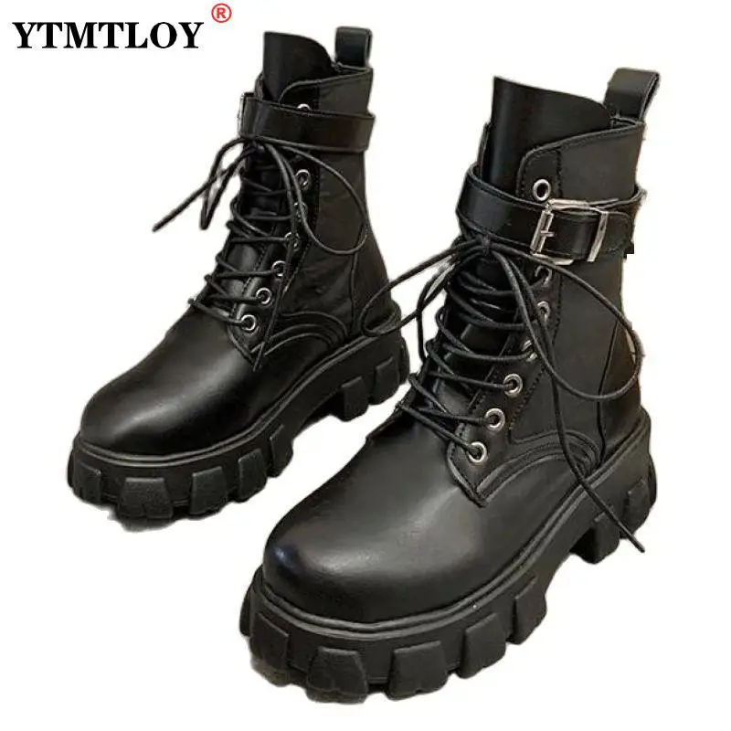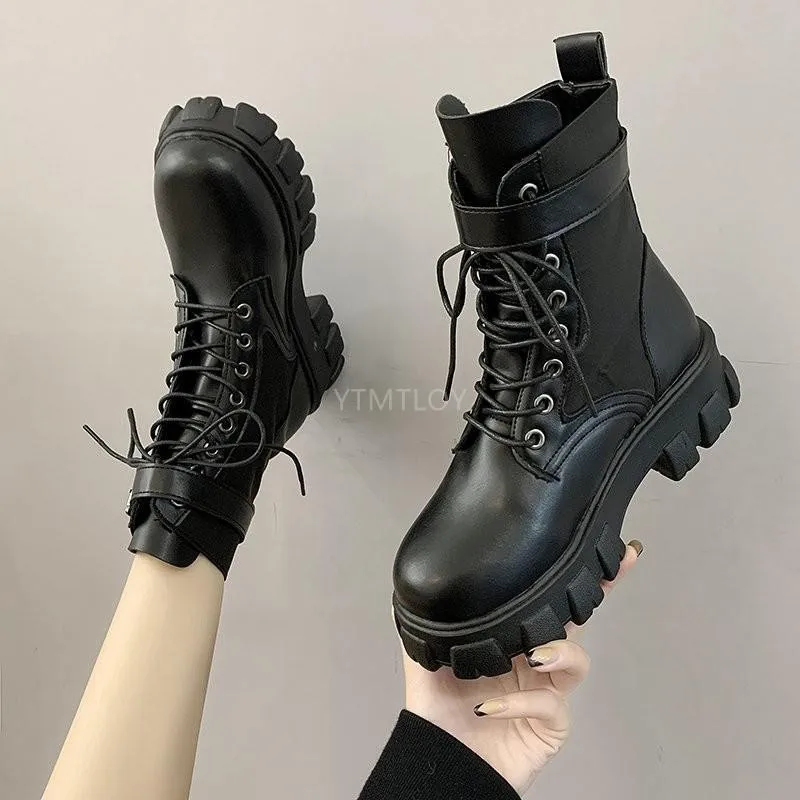 Полуботинки на шнуровке; Женские ботинки на толстой подошве женская обувь круглый носок на платформе с эффектом потертости на толстом каблуке, визуально увеличивающие рост, мотоботы зимняя обувь
