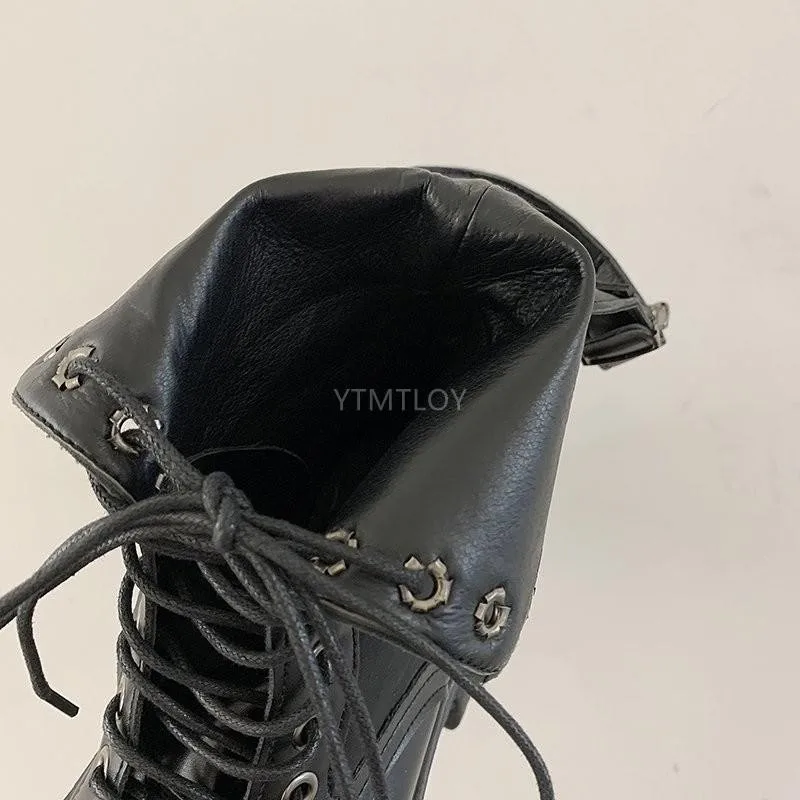 Женские ботильоны на высоком тонком каблуке 11 см со шнуровкой
