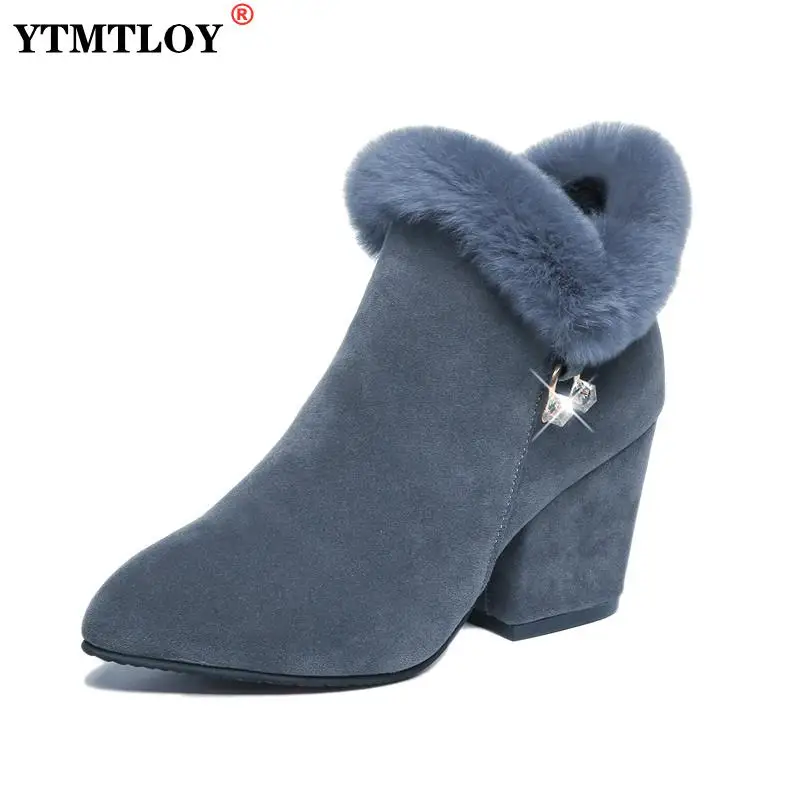Женские Теплые ботильоны на платформе, зимние ботинки на высоком ка...