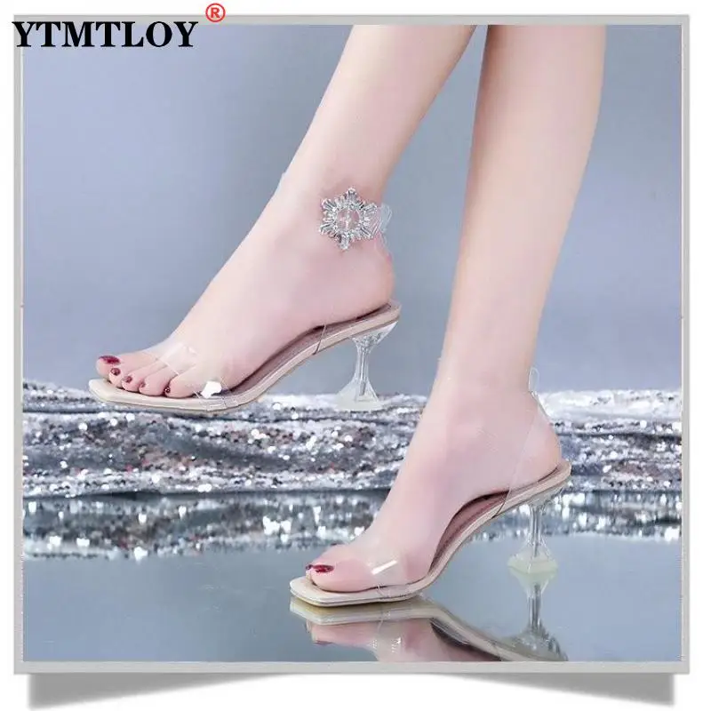 Сандалии женские на высоком каблуке, прозрачные босоножки из ПВХ, с...