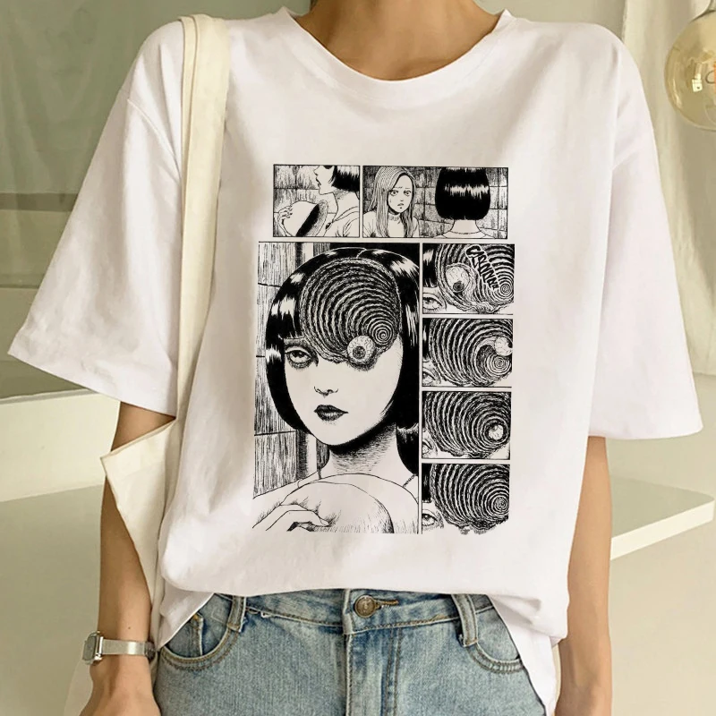 Ужас комиксов Джунджи Ito женская футболка женская уличная Harajuku футболка Tumblr гранж летние Kawaii Топ для женщин
