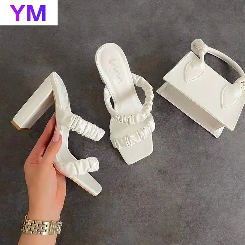 2021 г. Дизайнерские Модные плиссированные женские босоножки женские туфли-лодочки с открытым носком на высоком квадратном каблуке вечерняя вечерние женские Летние сланцы 43