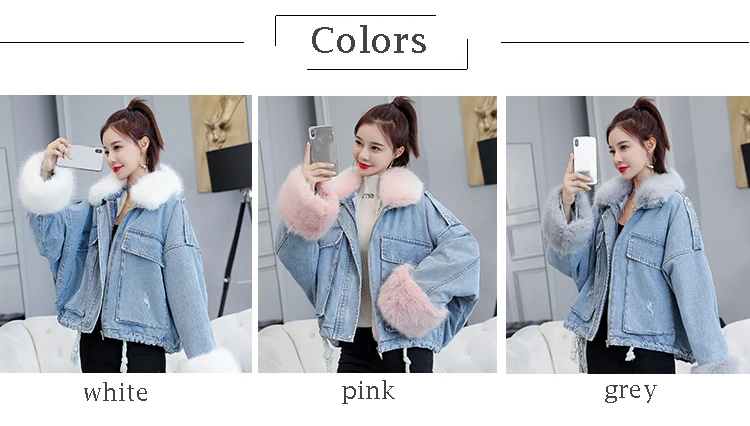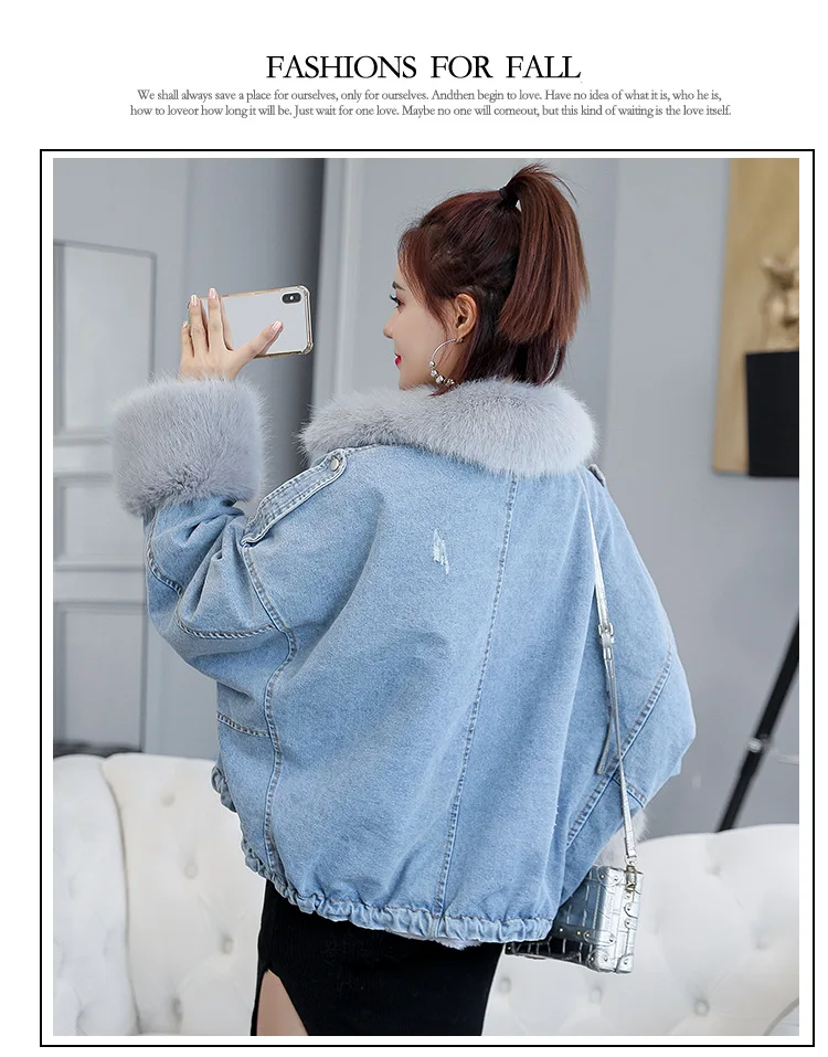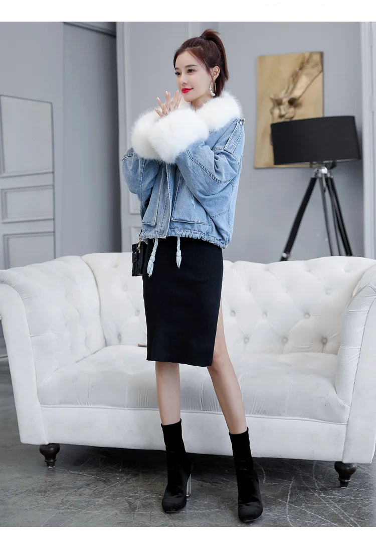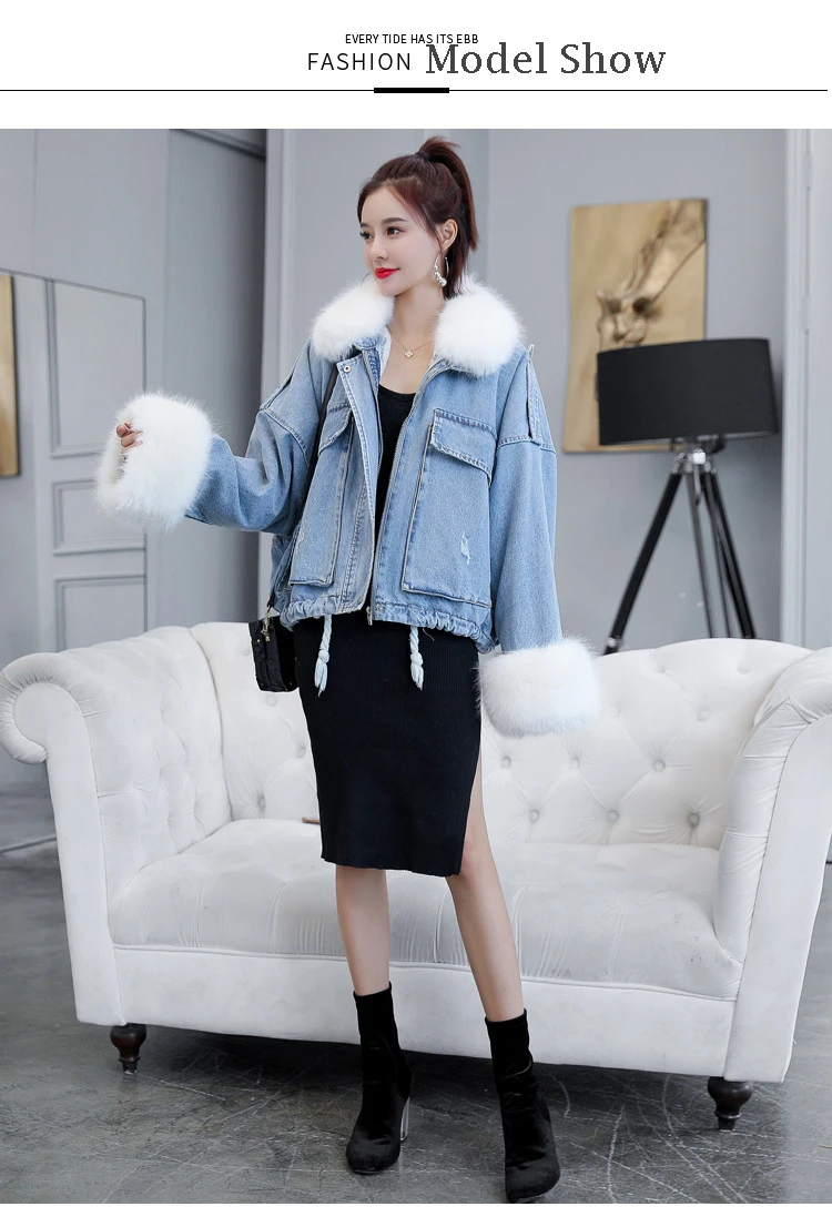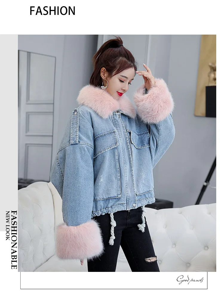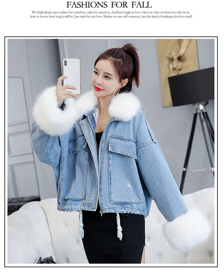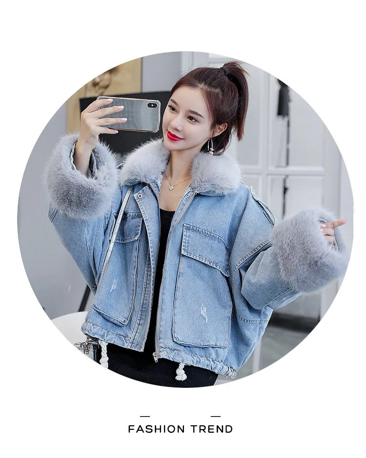 Женская джинсовая куртка с меховым воротником, винтажная Толстая те...