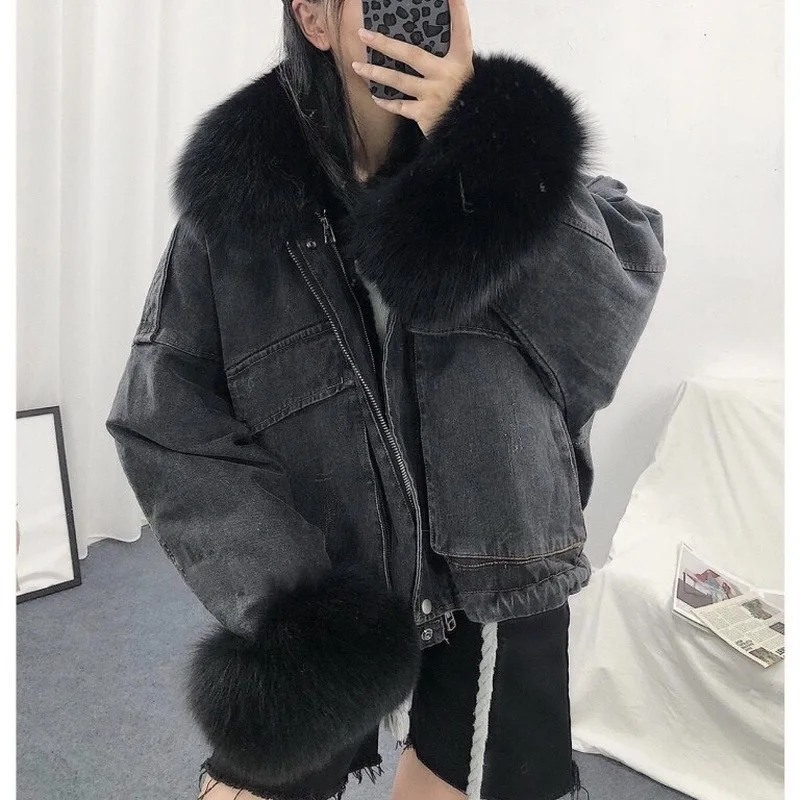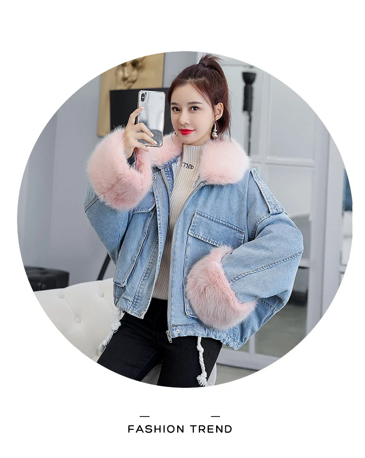 Luzuzi женская зимняя джинсовая куртка 2022 оверсайз с большим мехо...