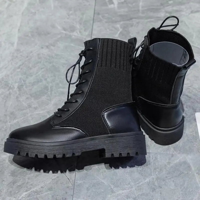 Женские ботинки без шнуровки на платформе в западном стиле трикотаж...