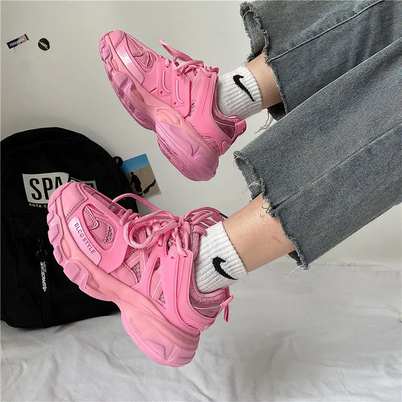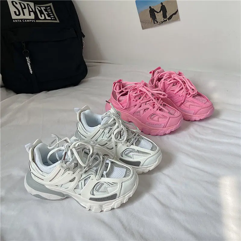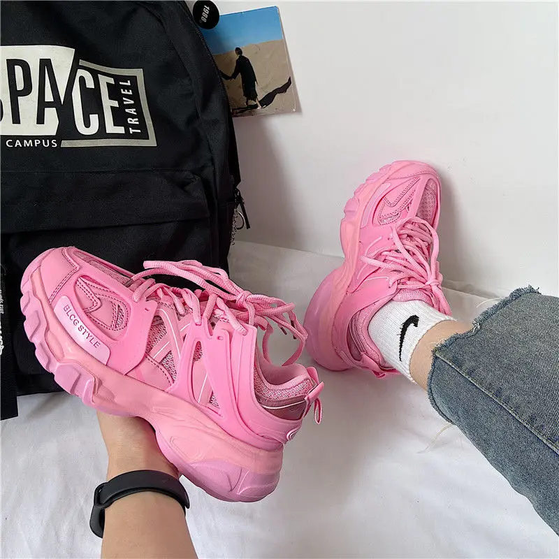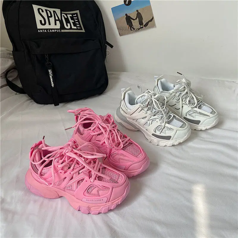 Стильный бренд на молнии; Женские дизайнерские кроссовки; Милая Розовая обувь на не сужающемся книзу массивном каблуке; Женские Обувь с дышащей сеткой; Женские беговые кроссовки для светильник белая спортивная обувь