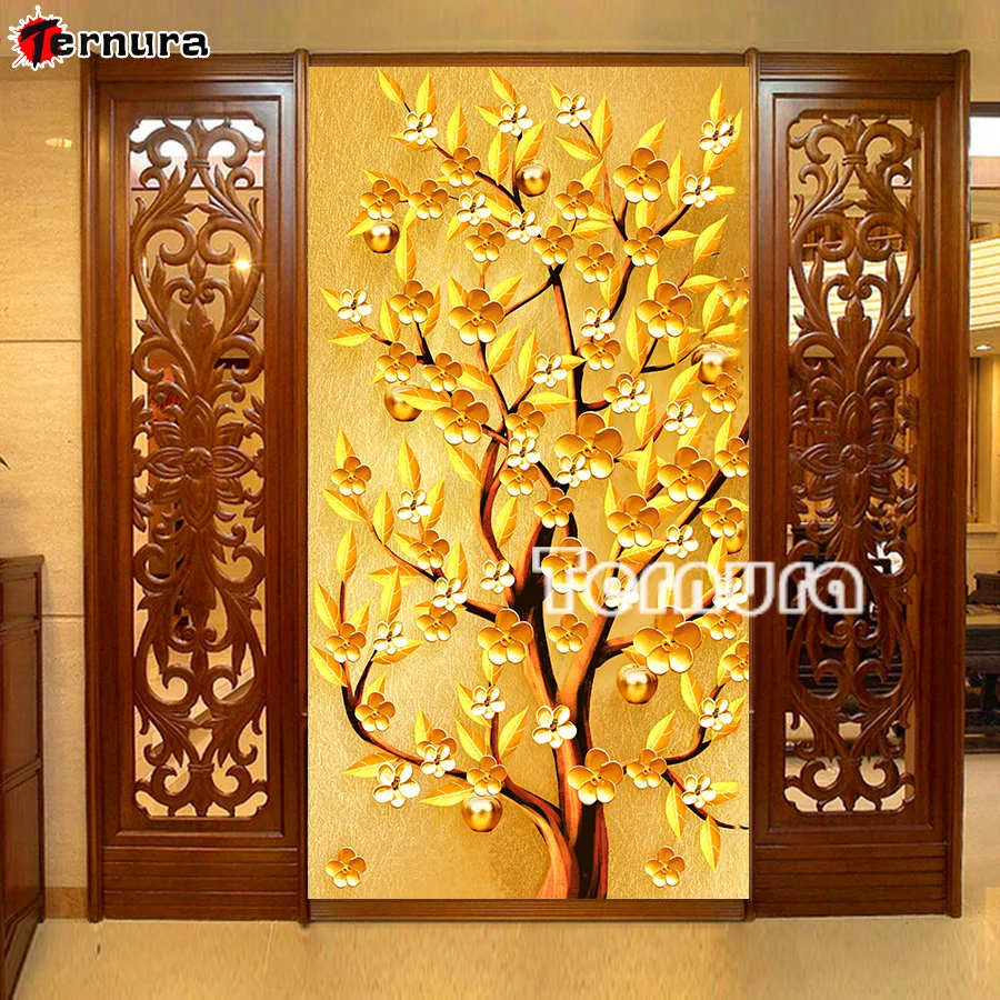 5D алмазная живопись сделай сам, квадратная, круглая, сверло, золотистая Бриллиантовая вышивка крестиком, домашний декор
