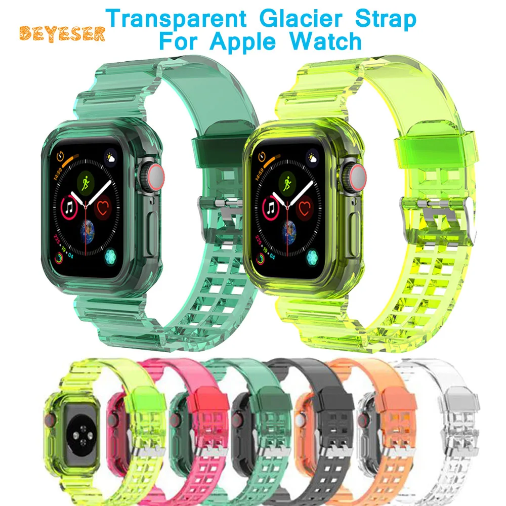 Силиконовая Прозрачная накладка на ледник ремешок для наручных часов Apple Watch 38/40/42/44 мм браслет с рамкой для наручных часов iwatch, SE Smartwatcch ремешок для часов