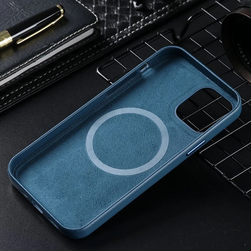 Чехол из натуральной кожи для iPhone 12 Pro Max, деловой чехол из натуральной кожи для iPhone 12 Mini, Магнитный чехол для задней панели телефона с зарядкой