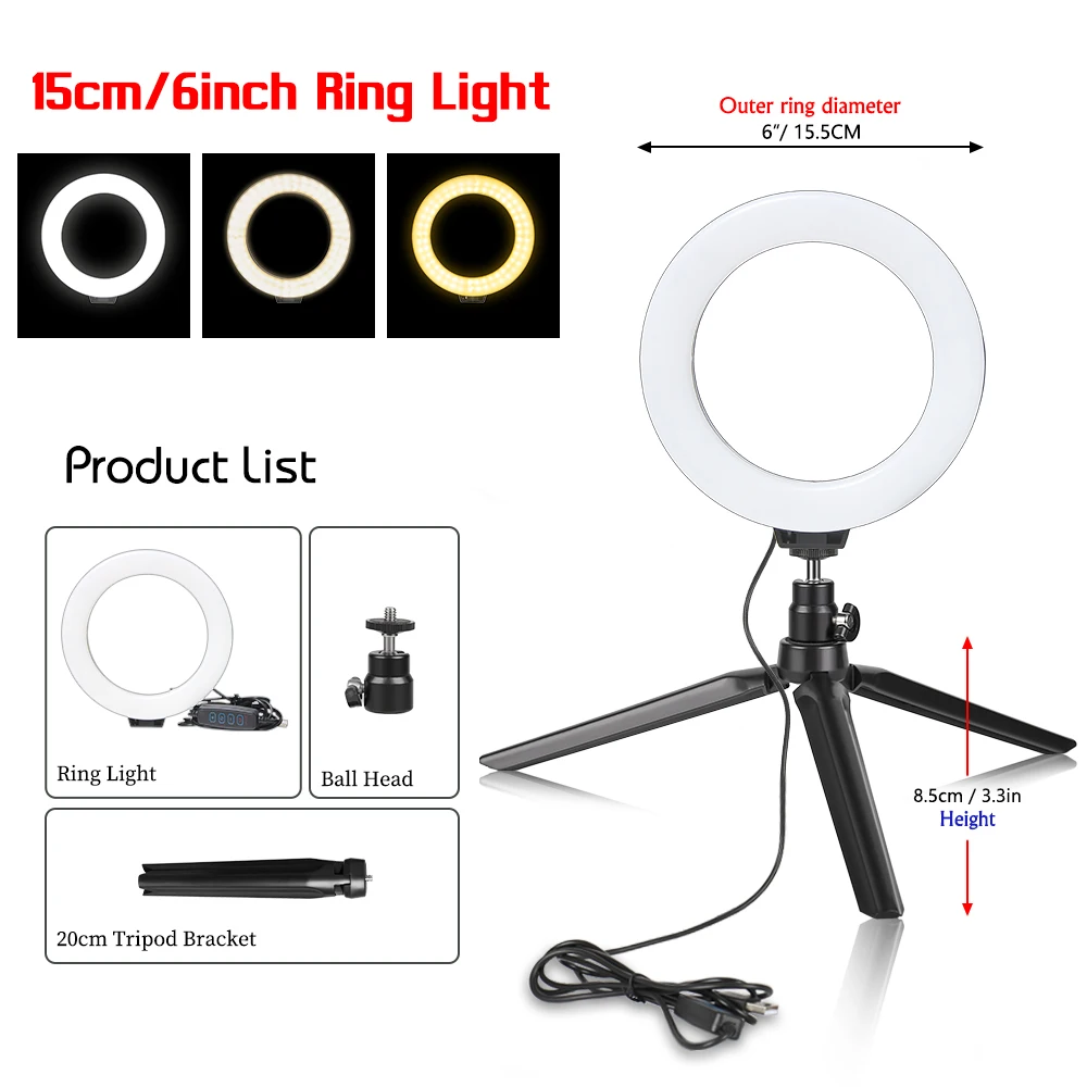 Features 5SH 6 inch Ring Light Photo Ringlight Led With Tripod Stand