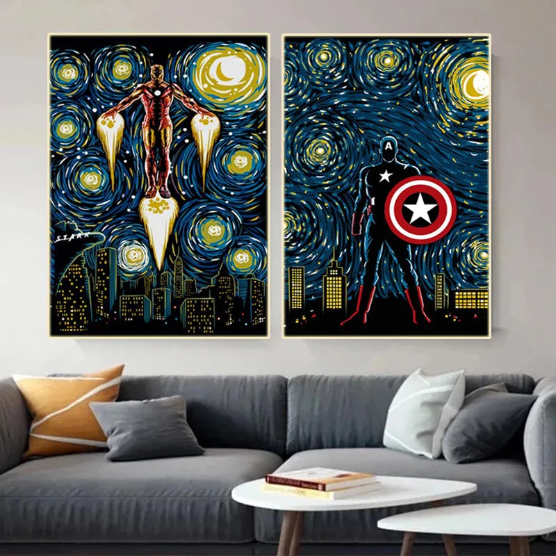 Настенная картина мстители, холст с принтом супергероев, аниме Железный человек, Капитан Америка, настенное искусство, декор для детской комнаты