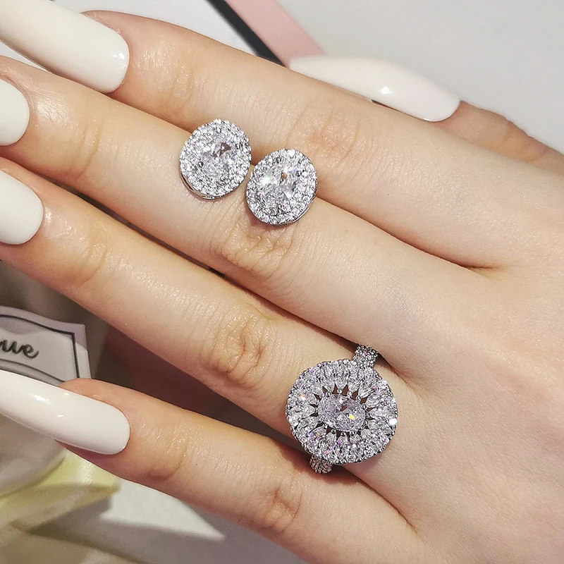 Женский ювелирный комплект из кольца, серёг и кольца, из серебра 925 пробы