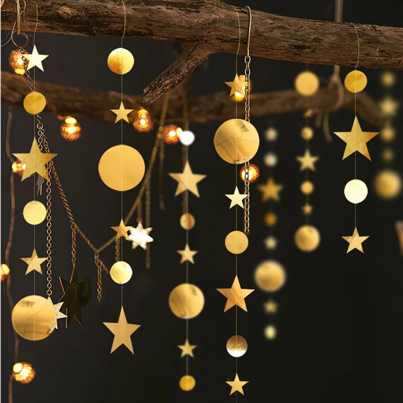 Свадебное украшение, 4 м, золотые, серебряные звезды, круглые бумаж...