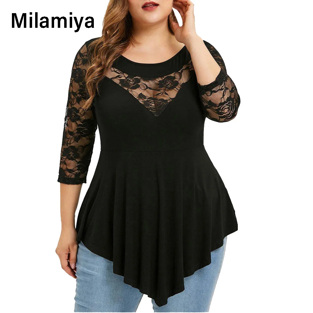 1. Особенности: размера плюс, однотонные, с цветочным рисунком, кружевом, с О-образным вырезом, асимметричная, с рукавом три четверти, топы, блузы, стильный и модный дизайн, простой, топ, модная блуза