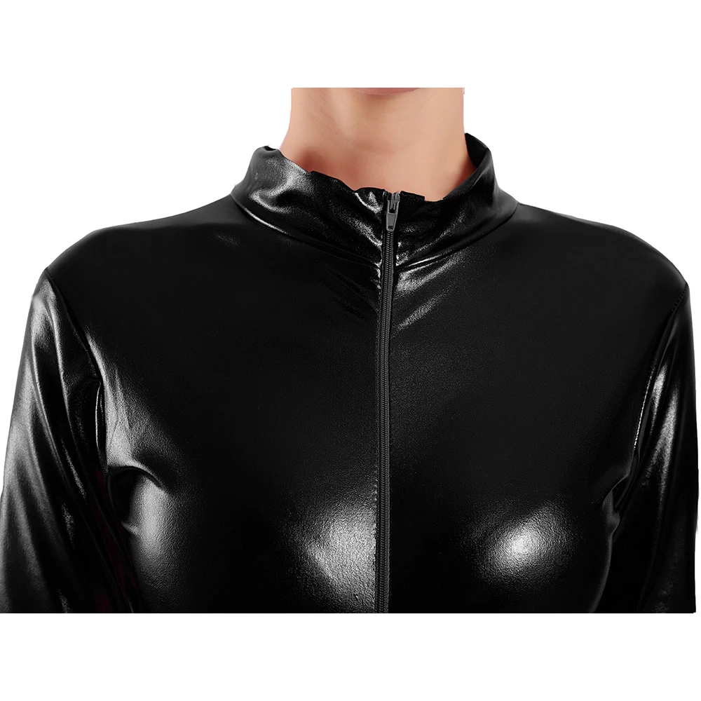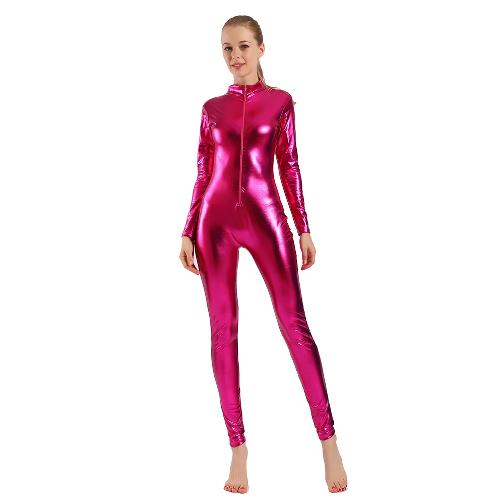 Женский Блестящий Комбинезон AOYLISEY, комбинезон с длинным рукавом и ложным воротником, Одежда для танцев, мужские костюмы зентай, комбинезоны цвета металлик