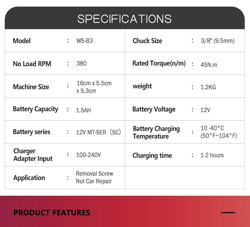 Электрический гаечный ключ VVOSAI, 38 дюйма, 12 В, перезаряжаемый, ...