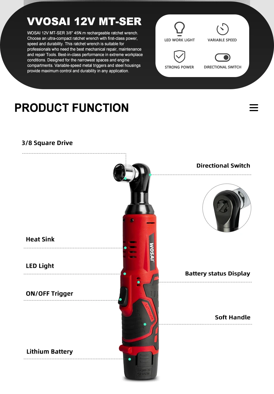 45NM 12V электрический ключ с трещоткой 38 беспроводной ключ комплект для снятия винтовой гайки для ремонта автомобиля MT-Series батарея Электроинструмент VVOSAI