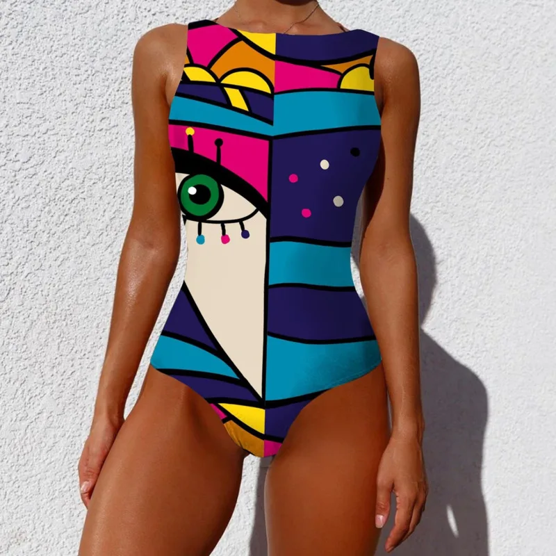 2021 креативный сексуальный купальный костюм с принтом Закрытая купальная одежда бикини пуш-ап женские Монокини пляжный купальный костюм для бассейна купальник