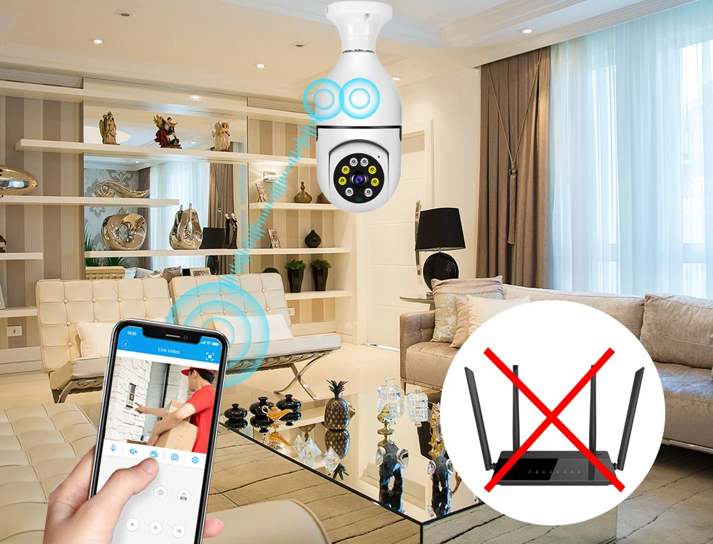 Поставьте камеру на лампа светильник держатель, затем подключить его к сети Wi-Fi с помощью мобильного приложения.Камера поддерживает только Wi-Fi сеть 2,4G. 5G Wifi сети не поддерживаются.)