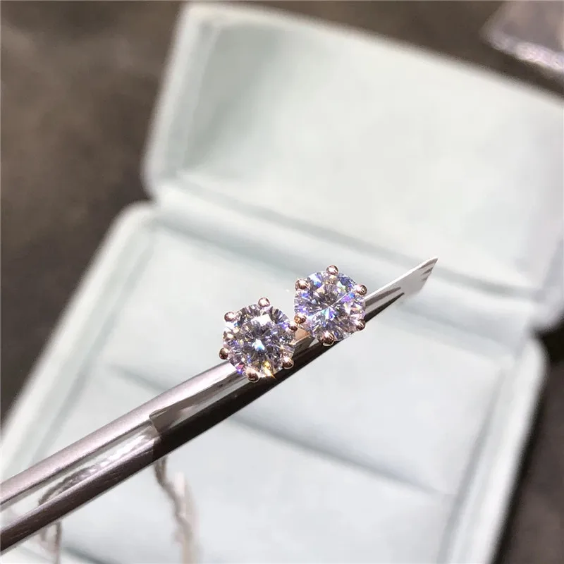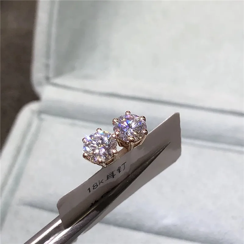Inbeaut, 18K, Розовая позолота, пройти алмаз Тесты отличный крой всего 1-2 ct D Цвет серьги-гвоздики с муассанитом серьги 925 Серебряные ювелирные изделия