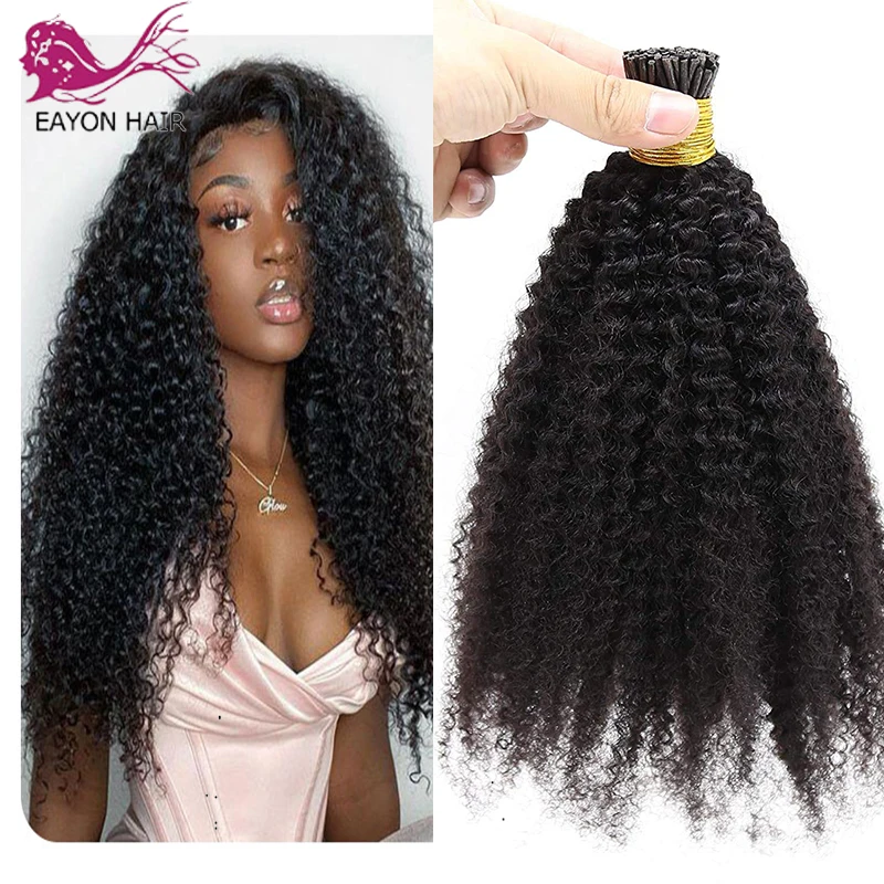 EAYON афро кудрявые I-образные волосы для наращивания волос бразильские натуральные человеческие волосы для женщин 1 гнитка 100 Пряди натуральный цвет