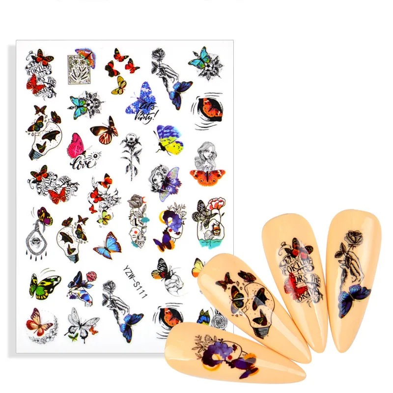 2022 новейшие наклейки на ногти бабочки роза цветок абстрактный женский дизайн лица украшения для ногтей Маникюрные наклейки для ногтей