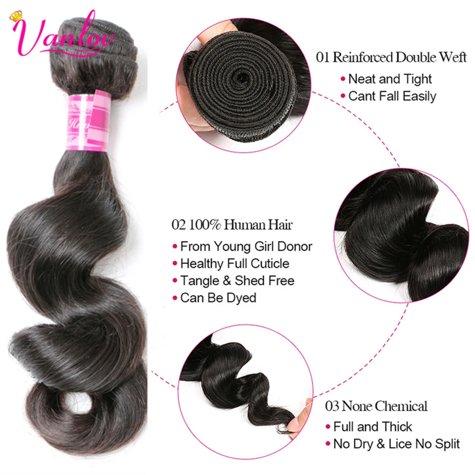Vanlov свободная волна 3 пряди 100% человеческие волосы для наращивания не Remy натуральный цвет перуанские волосы переплетения пряди струи черного цвета в наличии