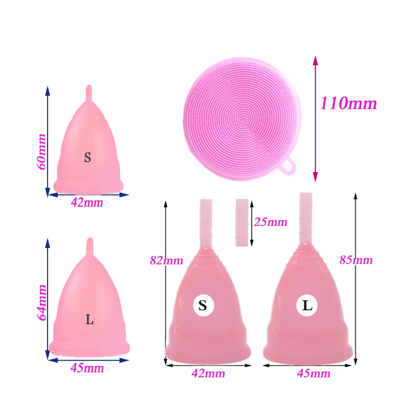Менструальная чашка размера S подходит для нормального протекания.Размер L менструальная чашка подходит для сильного потока.Мы рекомендуем вам купить два разных размера менструальных чашек для различных менструальных условий.