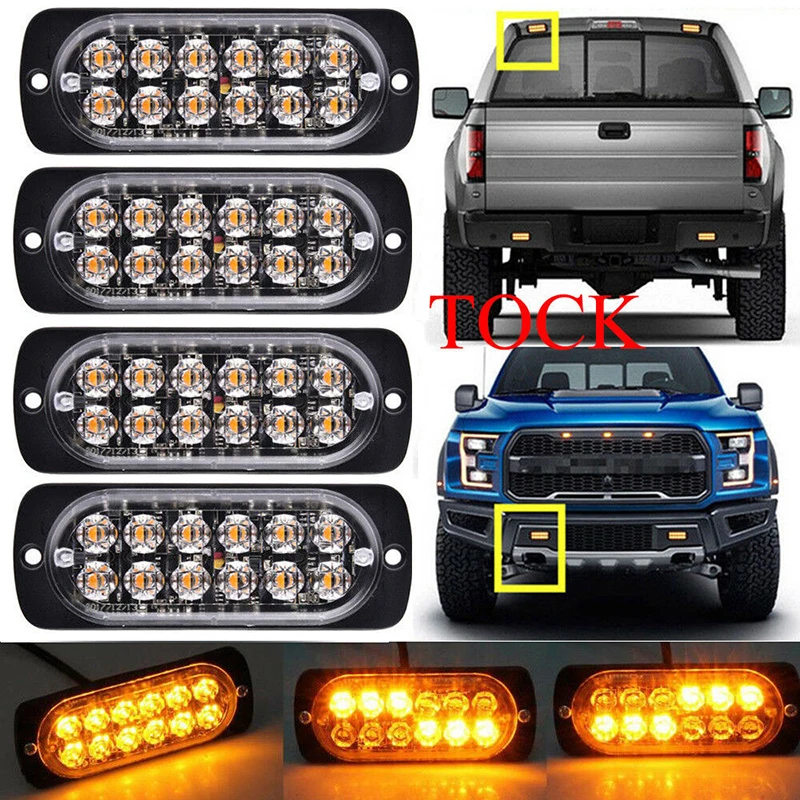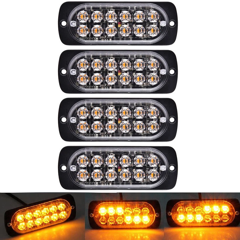 4 шт. 12-й желтый светодиод мигает восстановления стробоскоп Автомобильный аварийный сигнал ЖК-экрана оранжевый гриль пробоя светильник тумана светильник Маяк 4 шт-1 шт.