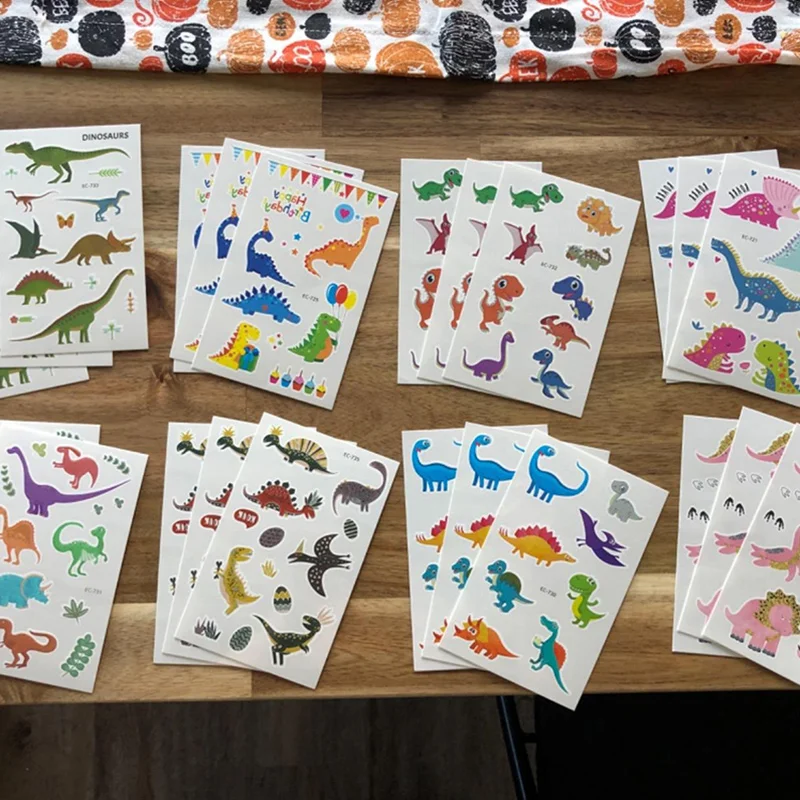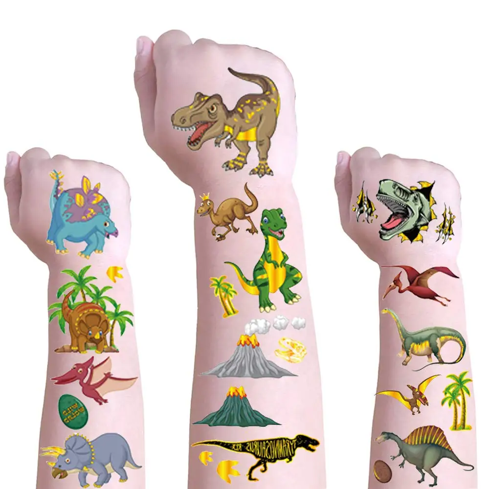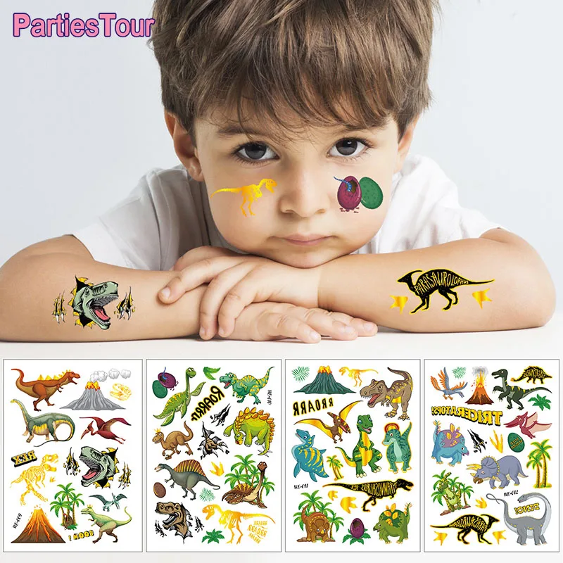Наклейка для динозавра, украшение на день рождения, динозавр, праздничные игры, подарки для маленьких мальчиков, Детская Наклейка на лицо, руку временные татуировки