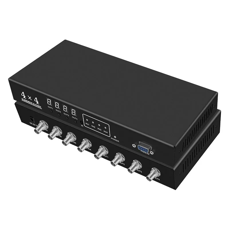 Этот продукт представляет собой матрицу SDI 4 × 4, которая может преобразовывать SDI сигнал из 4 портов в любые другие 4 Независимых выходных порта. Он поддерживает вход и выход сигнала Full-HD SDI, а также очень прост в использовании с высокой стабильностью и надежностью. Он широко используется на всех ТВ-станциях и других рабочих местах, безопасном мониторинге безопасности, месте обучения и т. д.