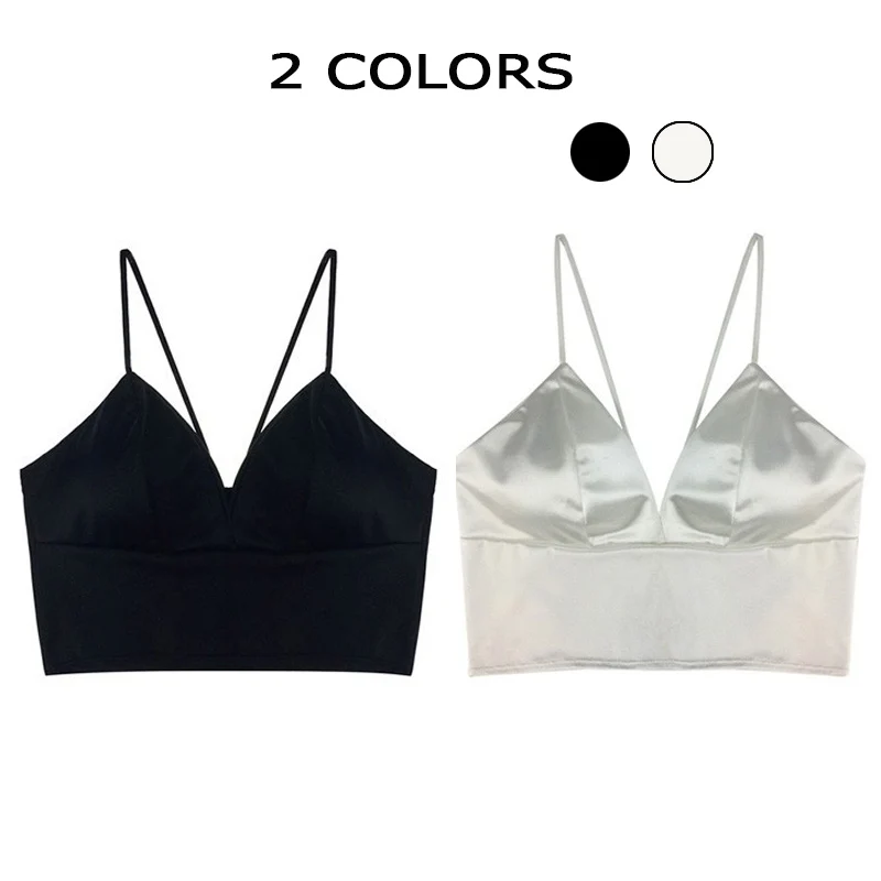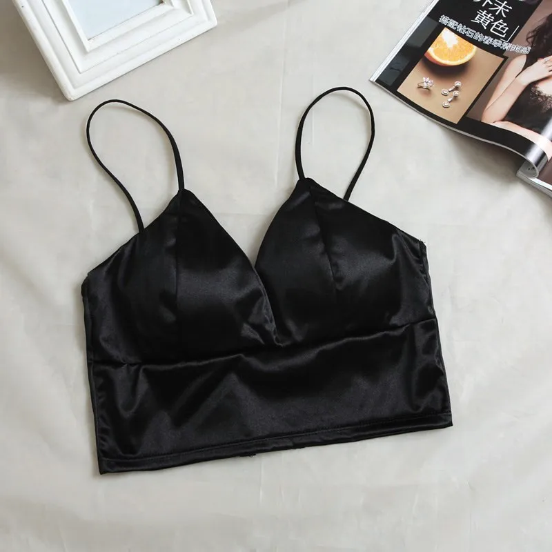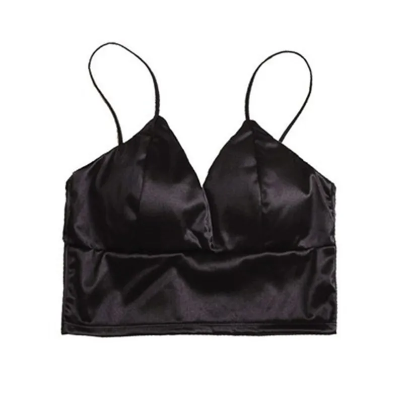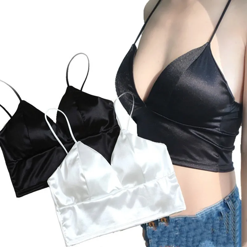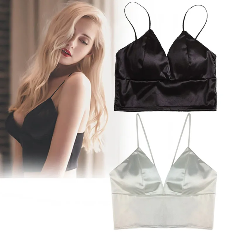 Женское нижнее белье с v-образным вырезом, Шелковый Гладкий бюстгальтер-Бралетт с бретельками на груди, майка