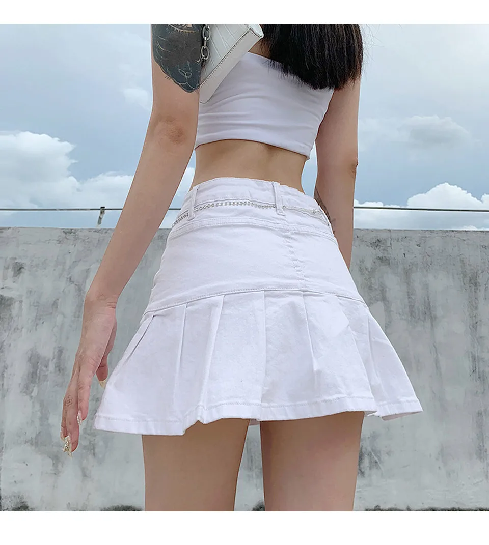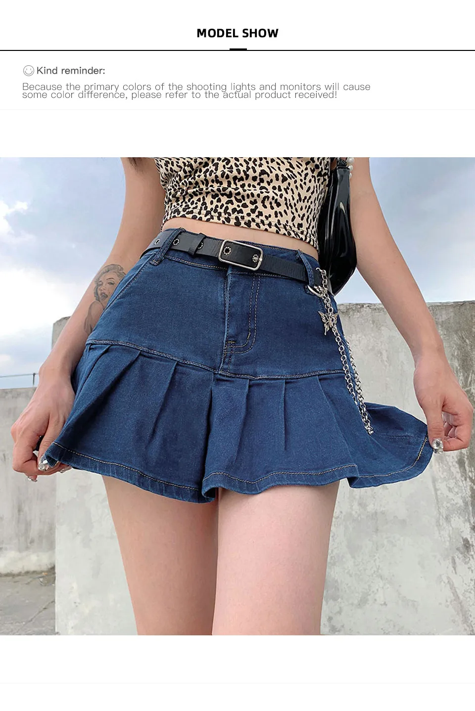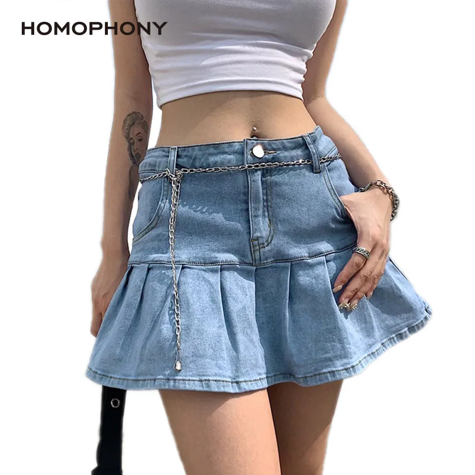 HOMOPHONY плиссированные мини-юбки стиле Харадзюку Y2K Джинсовые юбки Безопасность короткая летняя уличная оборками Высокая Талия Джинсовая мини-юбка