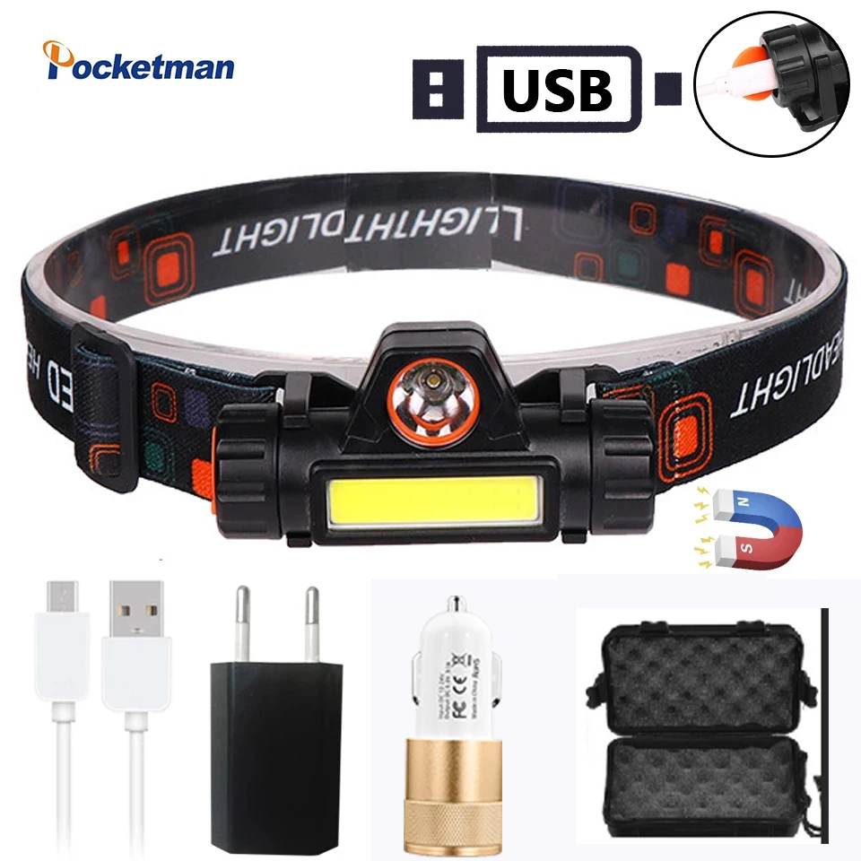 2021 Новый Портативный XP-G Q5 USB 18650 Перезаряжаемые Батарея светодиодный налобный фонарь COB рабочий светильник 2 Режим с магнитом Водонепроницаемый головная лампа