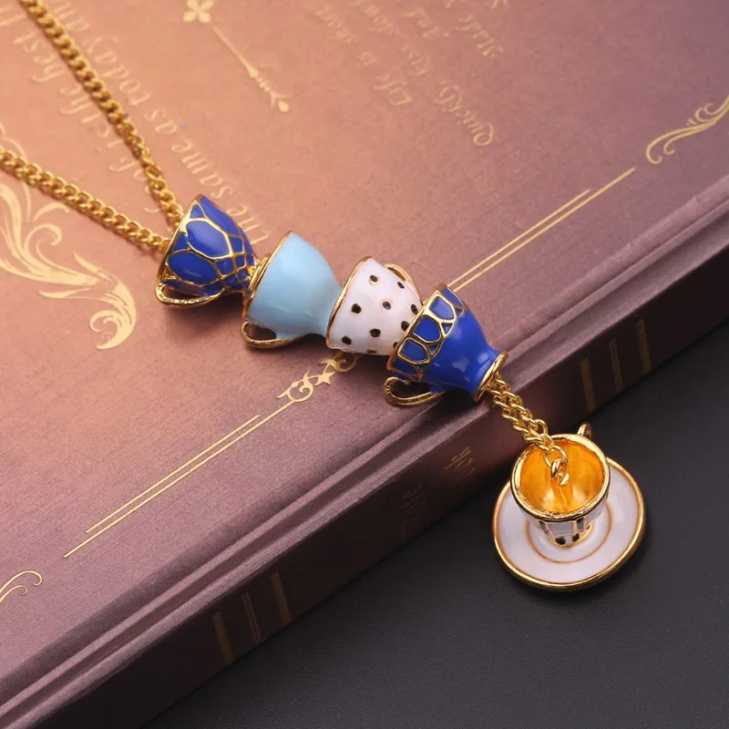 Цепочка для свитера ручной работы, аксессуары для одежды, длинное ожерелье, эмалированная бижутерия, ожерелье с чашкой чая, кулон для женщин, новинка 2021